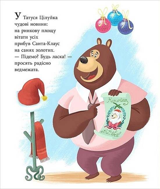 Історія французької письменниці Карін-Марі Амйо про теплі родинні стосунки тата-ведмедя і його ведмежат. Татусь Цілуйко і сім ведмежат з нетерпінням чекають на Різдво. Вони зустрічають на ринковій площі Санта-Клауса, співають колядки, прикрашають ялинку й складають списки подарунків… А що ж отримає тато-ведмідь на Різдво? Про який подарунок він мріє? Як же непросто бути татом, але це таке щастя! Книга для дітей дошкільного віку.