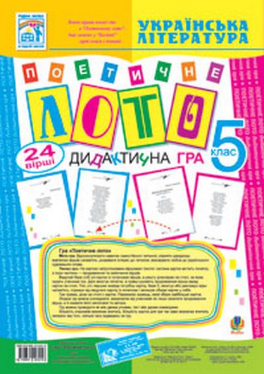Гра Поетичне лото 5 клас. Навчальний посібник.
