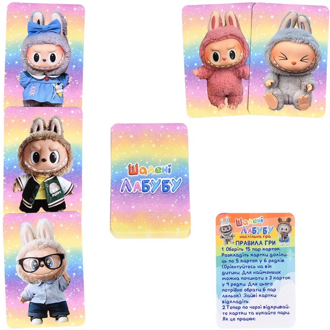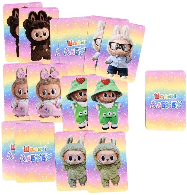 «Шалені Лабубу» — карткова гра з яскравими персонажами. Завдання гравців — знаходити пари карток.