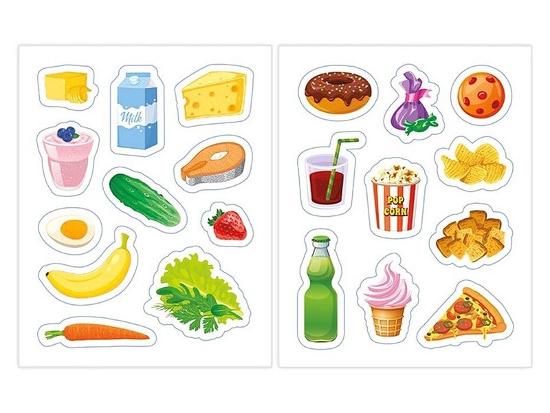 - Гра «Що корисне, а що шкідливе?» — дитина кладе продукти на веселий або сумний зуб
