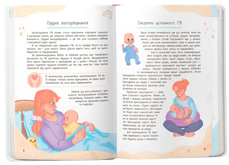Ця книга стане чудовим помічником для молодих мам, адже видання написане з розумінням психологічного стану молодої матусі та дбайливого до неї ставлення, а також із безмежною любов’ю до дітей.
