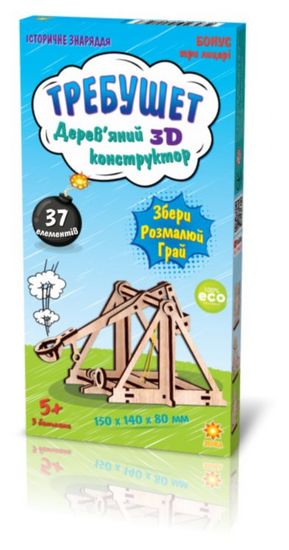 Дерев'яний 3Д конструктор "Требушет" познайомить дитину з різновидом історичного військового знаряддя. Цікаво збирати, цікаво грати.