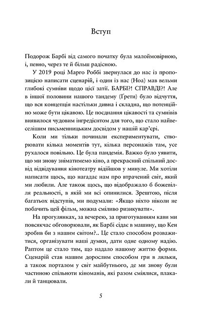 Це сценарна література та поп-культура. Книга буде цікава шанувальникам «Барбі», студентам кінематографічних спеціальностей, сценаристам, критикам і всім, хто прагне зрозуміти, як народжуються світові кінохіти.