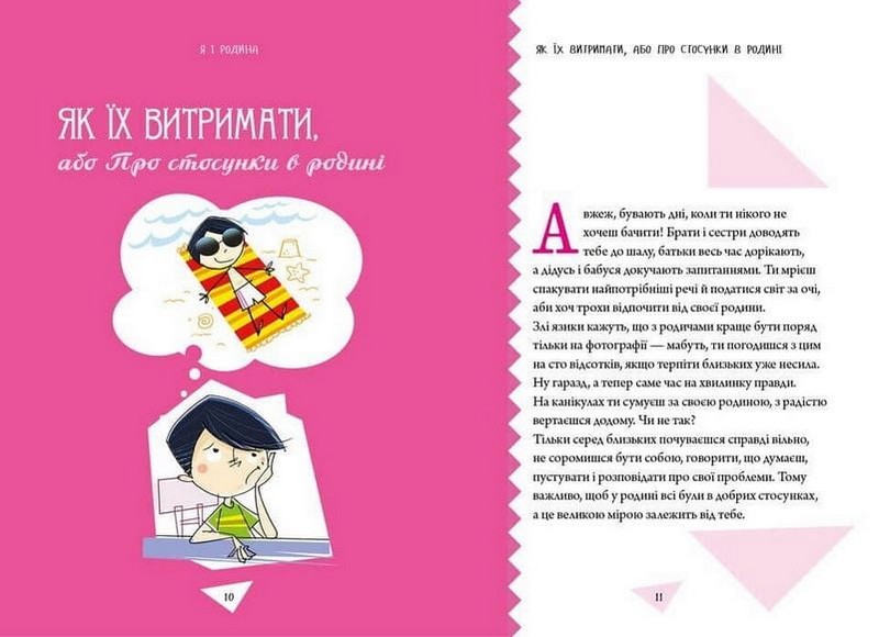 Ну як їх витримати? Це питання, напевно, спадало тобі на думку вже не раз, коли доводилося терпіти батьківські нарікання, незадоволені й розчаровані погляди. О так, хіба цим дорослим догодиш?! А коли до того додати ще й проблеми у школі, складні взаємини з однолітками і перехідний вік загалом, то дуже важко дивитись на світ крізь рожеві окуляри... Тобі здається, що навколо суцільний хаос і годі зрозуміти, як чинити правильно. Якщо хочеш упоратися з усім тим жахіттям, відкривай «Порадник підлітка». Тут знайдеш багато корисного. Дізнаєшся, між іншим, як порозумітися з учителями, спланувати своє навчання і справи так, щоб мати більше часу для розваг. Навчишся ввічливо розмовляти з людьми й вести здоровий спосіб життя. Що іще? Хутчіш дізнавайся!