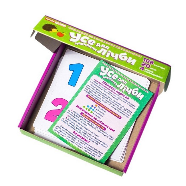 У наборі міститься 108 навчальних карток і аж 20 ігор з різними завданнями! І декілька з них 100% стануть улюбленими для дитини.