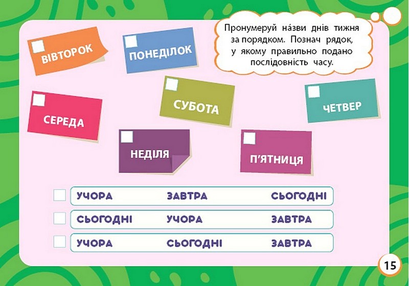 Із книжкою «Час і пори року» дитина цікаво та з користю проведе час, адже розгадуватиме тематичні ребуси, шукатиме відмінності, розрізнятиме час на годиннику, а також знаходитиме зайве на малюнках чи доповнюватиме їх. Разом із тим малюк наводитиме по пунктиру, розфарбовуватиме малюнки з порами року й часом доби та використовуватиме наліпки в завданнях. Робота з виданням допоможе покращити дрібну моторику пальців рук, розвине увагу та уяву, потренує пам’ять і посидючість, виховає старанність та акуратність під час виконання завдань.