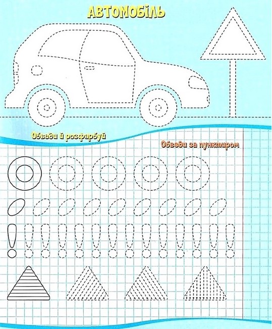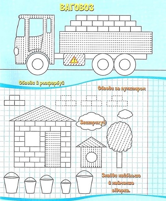 Збірник цікавих та корисних вправ для занять із дитиною дошкільного віку. Обводка, штриховка, малювання, розфарбовування, тощо.