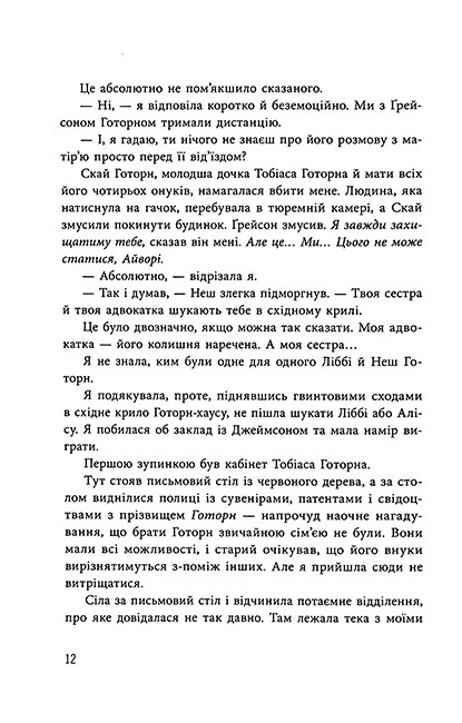 У другій частині серії «Ігри спадкоємців» Дженніфер Лінн Барнс знову занурює нас у світ розкоші, інтриг і загадок. Ейврі отримала мільярдний спадок — але разом з ним і заплутану гру, яку розпочав Тобіас Готорн. У «Спадку Готорна» ставки зростають, з’являються нові гравці, а відповідь на головне запитання — чому саме вона? — стає дедалі ближчою і страшнішою.
