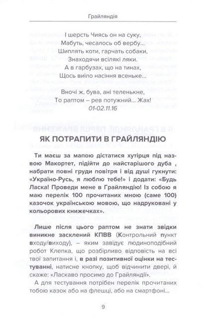 Грайляндія із містечком Грай, Гуляй-селом та Макортетом - це український Діснейленд на папері. Завітаймо до нього, Де на всіх нас чекає привітно усміхнена дівчинка Будь Ласка, провідниця у предивне скупчення казок... Тож скоріше завітаймо туди!