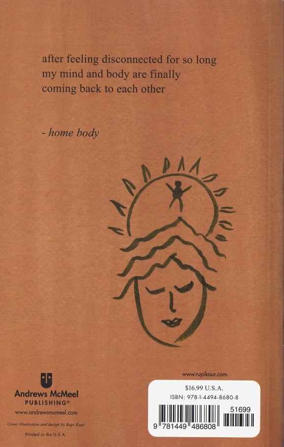 rupi kaur constantly embraces growth, and in home body, she walks readers through a reflective and intimate journey visiting the past, the present, and the potential of the self. home body is a collection of raw, honest conversations with oneself - reminding readers to fill up on love, acceptance, community, family, and embrace change. illustrated by the author, themes of nature and nurture, light and dark, rest here.