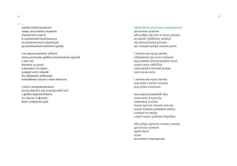 Це не просто поезія. Це вірші, наполохані голубами на Поштовій набережній. Вірші, які народилися там, де щойно розтанула музика. Прозорі та невагомі, вони розлітаються під вечірніми ліхтарями, повільно розтинаючи травневе повітря своїми тільцями. Вірші Єлизавети Жарікової завжди про історію поза точним і структурованим, завжди про потужний голос крізь веремію тиші. Коли Ліза говорить, що «…без цього безглуздого кроку крізь дим я не можу йти далі», то ні, не помиляється. Мистецтво і є кроком крізь дим. Тільки безглуздим — у сенсі помежів’я реальності та позасвіття. А кращої подорожі й не вигадаєш.