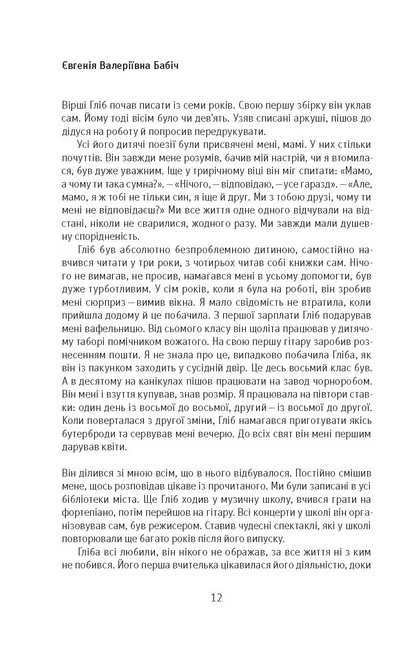 «Вірші та пісні. Спогади друзів» — це збірка, що поєднує творчість Гліба Бабіча, військового поета, музиканта, захисника України, та щирі слова його побратимів і друзів. Його тексти — це зброя, що б’є не кулями, а правдою. Це книга, яка болить, надихає й дає сили жити далі.