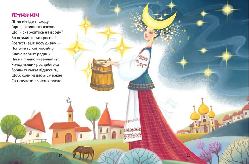Теплі, ніжні малюнки Елли Гринько відкривають перед дитиною чарівний світ небесних хмаренят і Райдуговолоски, Дівчини-весни, Літньої ночі та красуні Осені, вбраних у розкішні українські шати. Книжка мовою поезії невимушено знайомить читачів з порами року й різними явищами природи. Знайдемо на її сторінках і зимові вірші, і про звірів, птахів… А насамкінець книжка потішить малих читачів цікавими віршованими загадками про тварин.