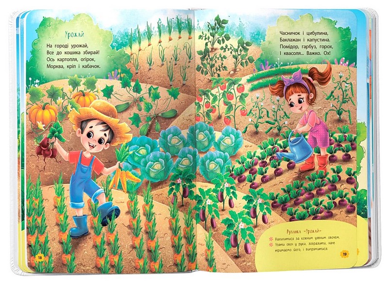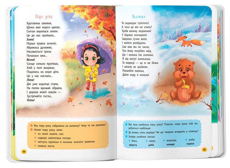 Віршики на початку збірки призначені для наймолодших і супроводжуються різноманітними завданнями: руханками, артикуляційними вправами або пальчиковою гімнастикою, що дозволять перетворити читання на інтерактивну розвивальну гру.