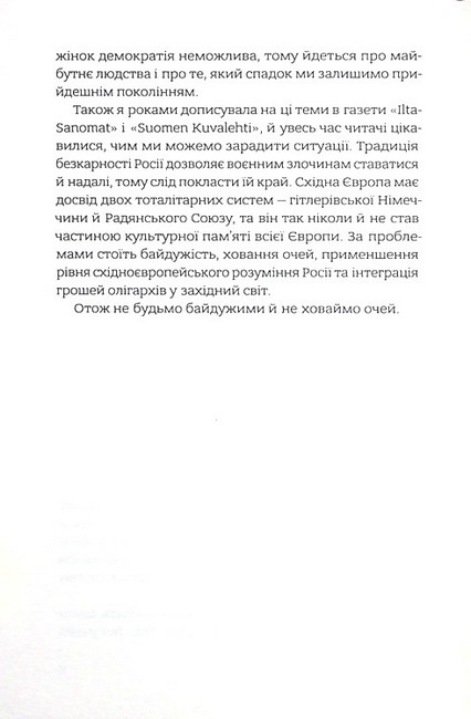 У своїх загарбницьких війнах Росія завжди використовувала одні й ті самі методи: депортація, русифікація, пропаганда, терор цивільного населення, знищення культури. Росія ніколи не просила вибачення і не була покарана за свої злочини. Геракліт помилявся: в одну річку можна ввійти двічі. І лише засудження зла спроможне його зупинити.