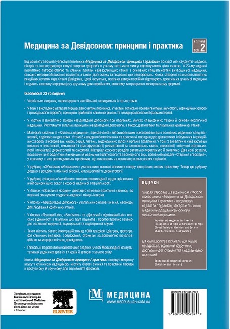 Книга «Медицина за Девідсоном: принципи і практика» поєднує медичну науку з клінічною медициною, містить базові знання та практичні поради в доступному й зручному для сприйняття форматі.