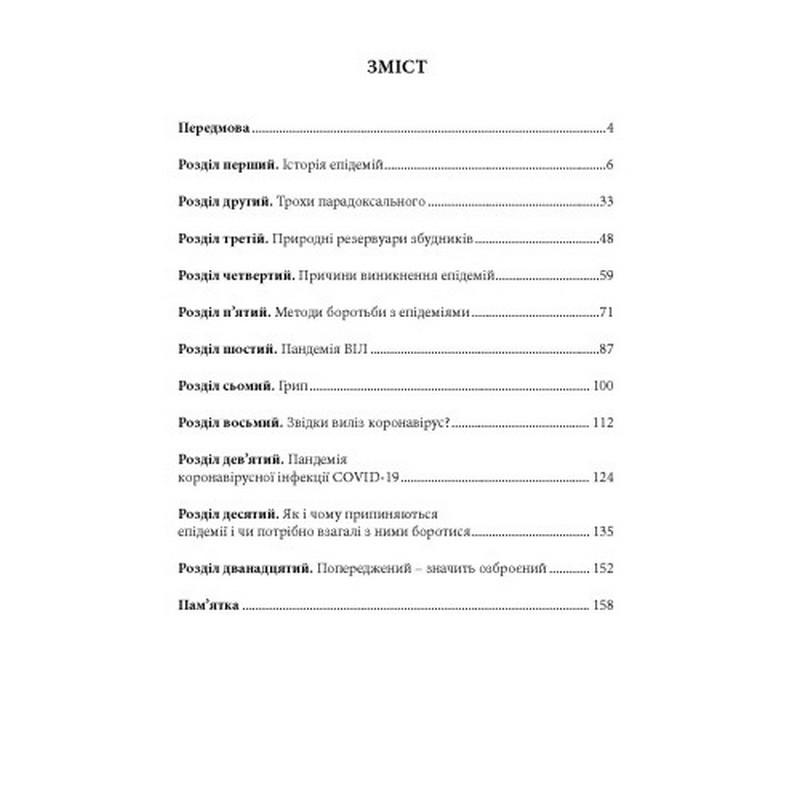Ця книга призначається тим, хто хоче знати правду про епідемії. Здавалося б, уже стільки написано на цю тему! Навіщо потрібна ще одна книга? Написано багато, з цим не посперечаєшся. Але більшу частину написаного становить відверта нісенітниця, в якій буквально тоне справжнє знання. Людині, яка не має медичної освіти, неможливо відокремити зерна від полови, тобто розумне від нісенітниці. Отримувати знання уривками з різних джерел не так зручно, як з одного. Книжка, в якій про предмет розказано «від а до я», до того ж розказано з наукового погляду, – найкраще джерело знання.