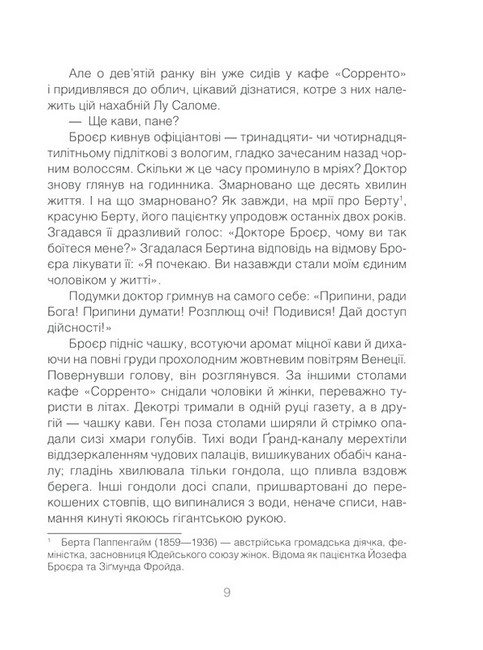Ірвін Ялом — жива легенда психоаналізу, засновник школи екзистенціальної психології, доктор медичних наук і професор Стенфордського університету, за чиїми підручниками навчаються тисячі майбутніх лікарів у всьому світі. Доктор Ялом створив новий жанр навчальної оповіді, у якій щиро й захопливо розповідає про випадки зі своєї психіатричної практики.