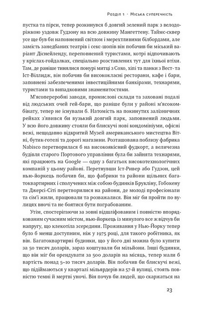 Сучасні міста колонізували заможні й успішні люди, залишивши далеко позаду жителів сіл і містечок. Хаби, коворкінги і хайтек-інновації поглинули парки, магазини та кав’ярні. Розбудова міст і міських районів призвела до нестримного збільшення орендних плат і концентрації багатства. У цій книжці економіст і соціолог Річард Флорида розглядає кризу, що спричинила нинішній тип урбанізації.