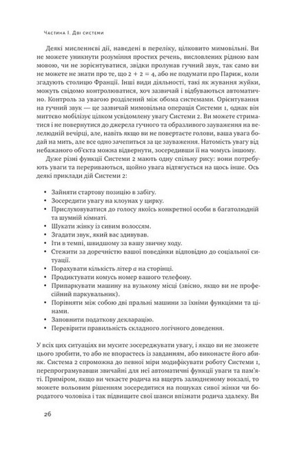 Зазвичай ми вважаємо, що діємо раціонально. Але чи справді це так На основі досліджень із когнітивної та соціальної психології Деніел Канеман розкриває таємниці роботи людського мозку, описує неусвідомлені упередження, властивості інтуїтивного та усвідомленого мислення, роль емоцій в оцінних судженнях. Без цих знань ви ризикуєте зробити неправильний вибір у магазині, інвестувати в неуспішні проекти й загалом приймати неправильні рішення. «Мислення швидке й повільне» навчить вас ефективно користуватися обмеженим ресурсом уваги, ухвалювати рішення в умовах невизначеності й удосконалювати власні судження. Утім книжка не є сухою інструкцією з експлуатації мозку. Це психологічна драма з двома дійовими особами у вашій голові — інтуїтивним та усвідомленим мисленням.