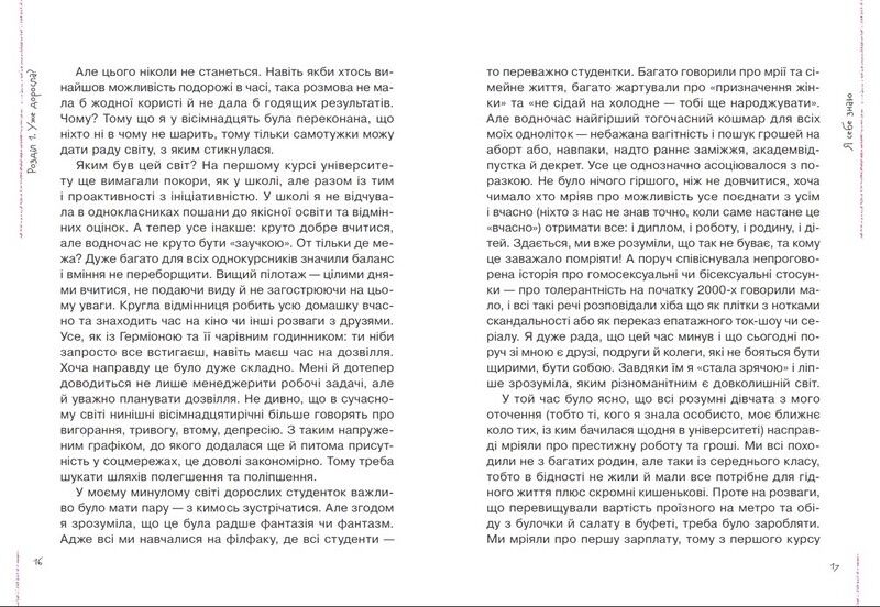 Отже, тобі 18, 25 чи 30+. Уже не дитина, однак досі немає й відчуття дорослості, як її уявляють: мовляв, у тебе на все мав би бути чіткий план і ти мала би бути готова до будь-якого розгортання подій. Однак ідеальне розплановане життя буває тільки в серіалах і популярних історіях про дорослих-дівчат-які-все-знають. У реальності ж ми постійно сумніваємося. Чи вірити гінекологині, котра виписала довгий список медикаментів? Як шукати свою першу роботу? Чи варто спробувати навчання за кодоном? Де знайти сили для життя в мінливому та дуже нестійкому світі?