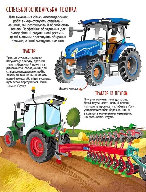 Із цією яскравою книжкою юні дослідники відкриють для себе безліч неймовірних машин: трактори й комбайни,екскаватори й бульдозери, крани та грейдери, рятувальні машини та гігантські бури для прокладання тунелів,величезні кораблі та багато інших транспортних засобів-рекордсменів. Деталізованімалюнки обов’язково вразіть уяву допитливих читачів!