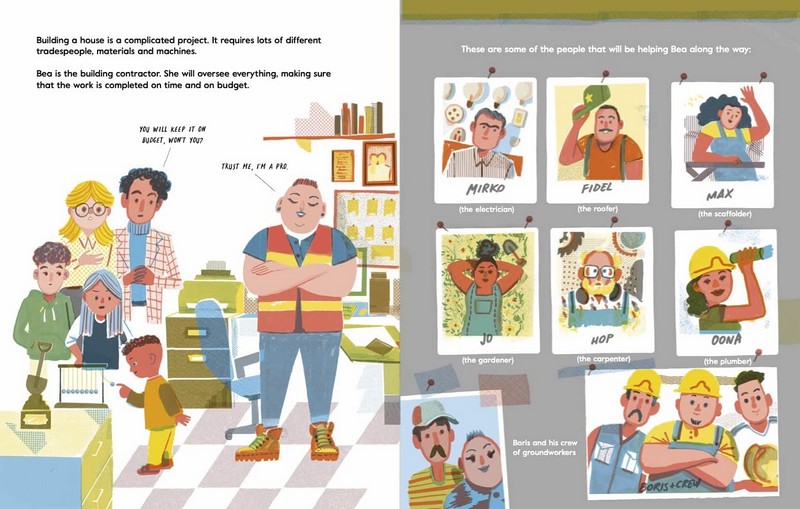 The Mellons Build a House is a hugely enjoyable picturebook that takes the reader step by step through the design and construction of a house. Heat pumps, solar panels, insulation and rainwater harvesting are all explained, and brought to life in Nik Neves’s warm, inclusive illustrations.