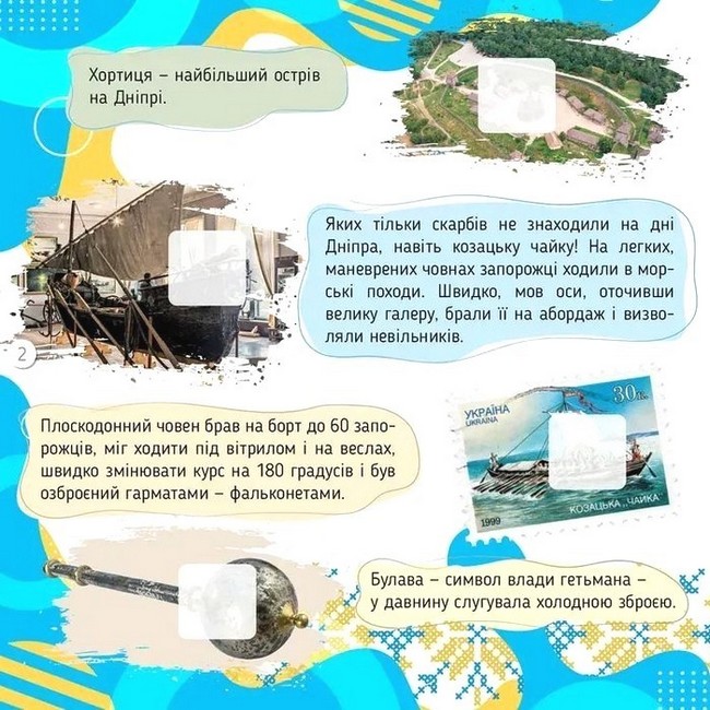 Чи є в нашій країні вулкани. Які неймовірні скарби ховають давні кургани. Який найбільший острів на Дніпрі... Читай цікавинки про чудеса України, дивовижні місця та унікальних тварин, давнє минуле й сучасні державні свята. Дізнавайся багато нового, доповнюй зображення наліпками та створюй свою яскраву, захопливу енциклопедію!