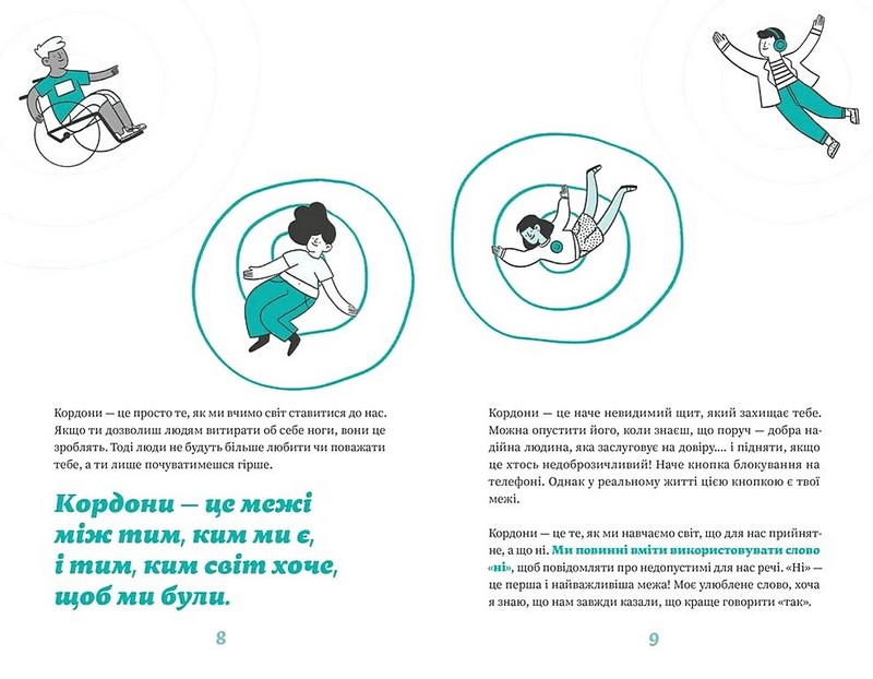 З дитинства нас вчать бути ввічливими і зважати на почуття інших. Проте важливо також зважати на власні почуття і не давати іншим ображати тебе, змушувати щось робити, коментувати твою зовнішність чи вбрання, обіймати чи торкатися тебе без твоєї згоди. Щоб навчитися захищати себе, потрібно вибудувати власні кордони. Як це зробити? Насамперед навчитися казати «ні» — стверджує авторка цієї книжки, лайф-коуч Мішель Елман. Легко і невимушено Мішель пояснює, як підліток може протистояти тиску, бодішеймінгу і порушенню власних кордонів у родині, у школі, в колі друзів та в інтернеті. Застосовуючи поради авторки, підлітки стануть сильнішими та впевненішими в собі.