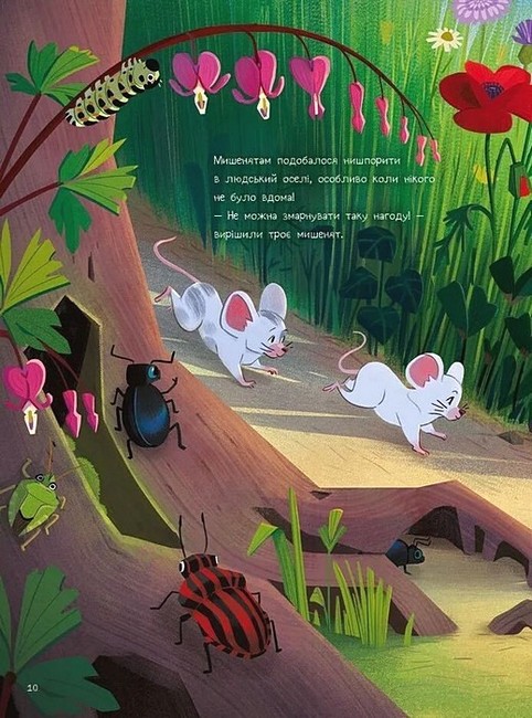 Історії про десятьох маленьких мишенят, що мешкають у тихому затишному селі. Непосиди не втрачають нагоди завітати до сусіда й «уполювати» на його кухні трохи смаколиків для всієї родини. А після ситної вечері хто ж відмовиться від запрошення на гостину до нової оселі дядечка Муло? Надто якщо той живе у музеї! Нумо рахувати мишок, відкриваючи для себе чудові витвори мистецтва! Слідуйте за десятьма в’юнкими мишачими хвостиками.