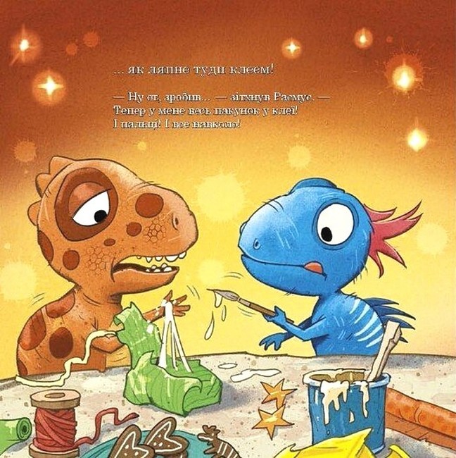 Різдво — час гучних пісень, забавок і, головне, сюрпризів! Расмус і Тіммі вже підготували чудові дарунки для своїх рідних. Залишилось красиво запакувати — і прямісінько під ялинку. Проте загорнути деякі подарунки виявилося непростою справою: скотч та клей повсякчас опинялися деінде, а не на пакунку… Що зрештою вийшло? Читайте в цій книжці.