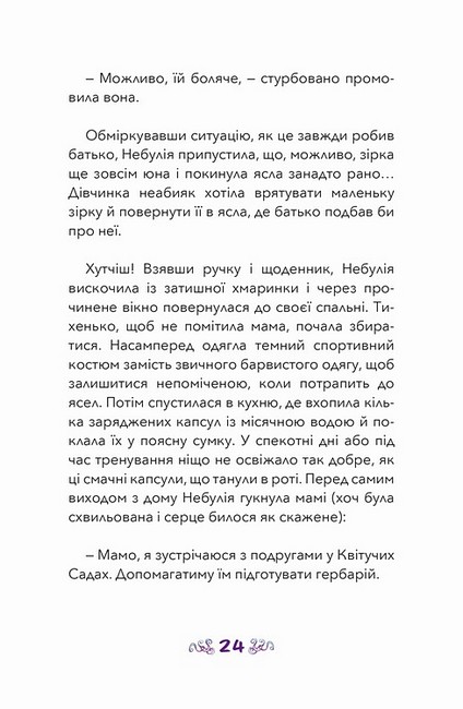 «Небулія і таємнича летюча зірка» — це чарівна історія про дивовижний світ, де магія і дружба переплітаються з неймовірними пригодами. На сторінках цієї книги діти потрапляють у всесвіт, де зірки мають власні секрети, а відвага і доброта здатні змінити хід подій. Разом із головною героїнею Небулією читач вирушає в подорож, сповнену загадок, блиску та світла — туди, де мрії оживають, а кожна маленька істота має свою важливу роль у великому космосі.