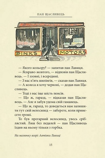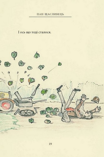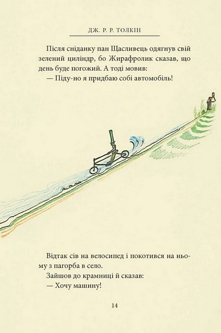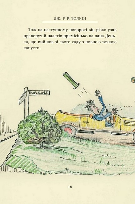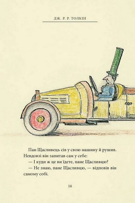 Пан Щасливець уперше сам за кермом вирушає на новому автомобілі до друзів Бевзників. І, звісно, від пригод не втекти. Там тачка капусти посеред дороги, там візок з бананами, а в лісі — ще й троє ведмедів. Але не всі пригоди скінчилися разом з мандрівкою. Що ж чекає на пана Щасливця дома і що то за натовп суне до нього? Про все це розповідає ілюстрована казочка Дж. Р. Р. Толкіна, яка зродилася з пригод самого автора на його першому автомобілі, придбаному 1932 року. Прототипами ведмедів стали іграшкові ведмедики Толкінових синів. А двом персонажам він дав імена двох героїв свого «Володаря Перснів». Та й ілюстрації до цієї книжечки виконав сам пан Толкін, прив’язуючи розповідь до малюнків, а часто мовби безпосередньо їх коментуючи.