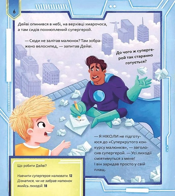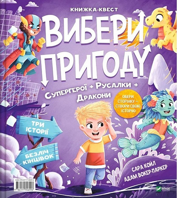 Ілюстрована книжка-квест поєднує дві інтерактивні пригоди — «Супергерої + Русалки + Дракони» й «Монстри + Принцеси + Акули», — з якими читачі рушають у неймовірні фантастичні світи, де можуть самостійно обирати сюжет і ухвалювати рішення.