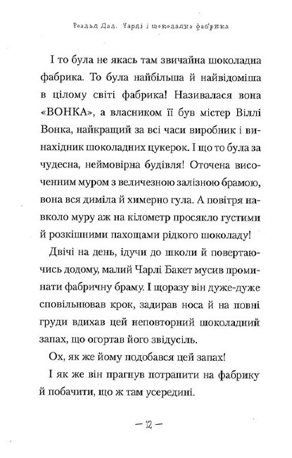 «Чарлі і шоколадна фабрика» — легендарна казка Роальда Дала, що стала улюбленою для мільйонів читачів у всьому світі. Це історія про доброго хлопчика Чарлі, який отримує чарівний шанс побувати на загадковій фабриці шоколаду містера Вонки. У кожному розділі — диво, гумор і справжні життєві уроки, замасковані під солодкий захват. Ця книга — як коробка цукерок: яскрава, несподівана, чарівна.