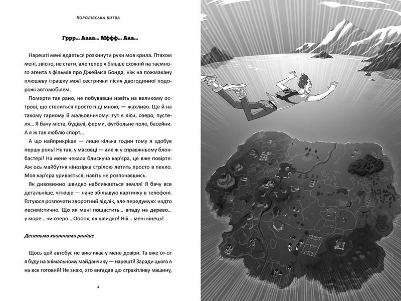 - Захопливе читання за мотивами мегапопулярної гри! Це історія про хлопця, який потрапив до «Королівської битви», думаючи... що проходить кастинг на фільм. Що ж, як для знімального майданчика, острів — напрочуд мальовниче і видовищне місце