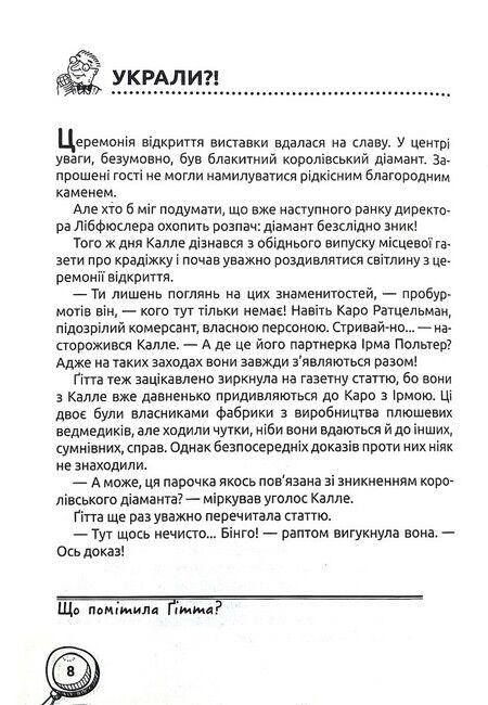 Детективам Келле Нишперу та Ґітті Тямкер терміново потрібні помічники, аби якнайшвидше знайти речові докази та кинути зловмисників за ґрати. А справ надійшло до агенції чимало: шість великих детективних пригод, і в кожній повнісінько загадок та головоломок. Хто викрав діамант? Хто зіпсував цирк? Як злочинці замітають сліди? Тож поспішаймо до детективної агенції, аби швидше розплутати справи!