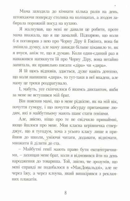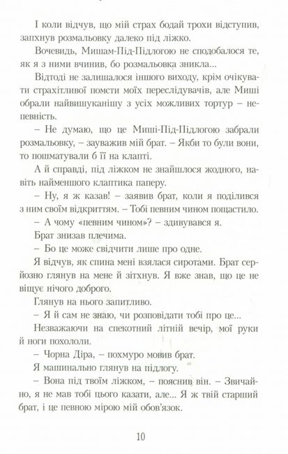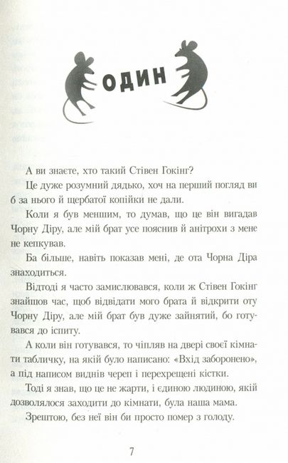 Що спільного між знаменитим астрофізиком Стівеном Гокінгом, Мишами-Під-Підлогою, Чорною Дірою і восьмирічним Пйотреком Ястшембським? Що таке Центр управління і хто така Заборонена Тітка? Що страшніше: миші, які оселилися в тебе під підлогою, Чорна Діра, яка розростається під твоїм ліжком, чи другорічник Климур, який відбирає в однокласників речі й гроші, хизуючись своєю силою? На кого можна розраховувати: на сміливу Моніку, яка хоч і пише з помилками, зате вміє битися не гірше за своїх братів, чи на Чорну Діру, яка завиграшки може поглинути все разом із твоїм кривдником? Доки наш герой був просто Братчиком, молодшим братом свого геніального брата, відповіді на ці питання було знайти непросто. Та хлопець виростає, у нього з’являються нові друзі, власні таємниці, стається перша бійка в школі... Він стає Пйотреком – самостійним і незалежним. І схоже, що ця зміна вражає його самого! Зворушлива й мудра повість про зростання, дружбу, родину, перші несміливі почуття, звичайні й незвичайні проблеми щоденного життя...