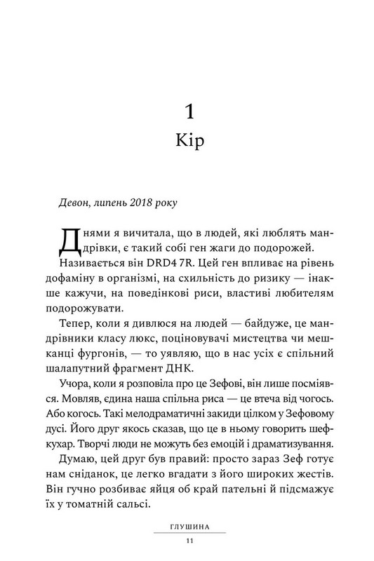 Роман належить до жанру психологічного трилеру з елементами детективу та напруженої драми. Він підійде тим, хто любить атмосферні, тривожні історії про секрети, що народжуються у тиші, і людей, що тікають не лише від інших, а й від себе. Якщо вам подобаються книги, де атмосфера гусне з кожною сторінкою, — «Глушина» стане чудовим вибором.