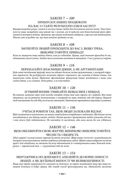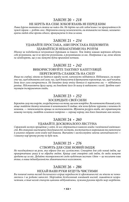 Книга «48 законів влади» навчить вас, як стати успішними і правильно вибудувати комунікацію з людьми, щоб завжди досягати бажаного. Автором цього видання з бізнес-психології є відомий американський коуч і автор бестселерів про механізми дії влади й людських взаємин Роберт Ґрін. «48 законів влади» розійшлися понад мільйонним тиражем і стали справжнім культурним феноменом у світі.