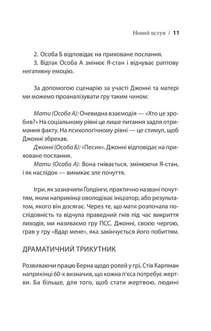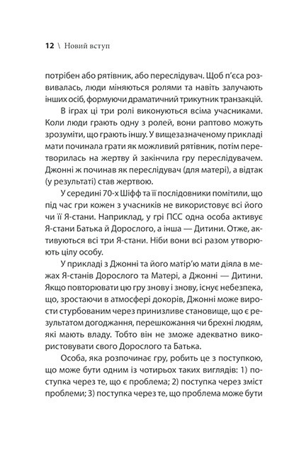 Це науково-популярна психологія, написана живою, доступною мовою. Вона — для всіх, хто цікавиться міжособистісними стосунками, хоче краще зрозуміти себе та інших, збудувати здорові зв’язки в родині, роботі чи дружбі. Незалежно від віку чи професії, кожен читач знайде у книжці своє відображення — і, можливо, вперше побачить, у які ігри грає сам.
