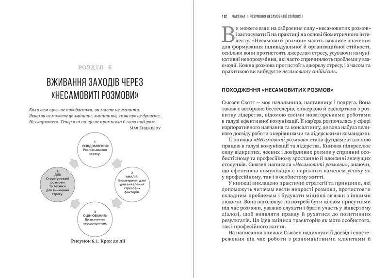 Книжка буде корисна для всіх, хто прагне ефективно взаємодіяти, працювати без виснаження та розвивати стійкість — розмова за розмовою.