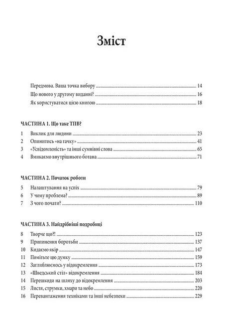 У цій книзі ви знайдете все необхідне для того, щоб почати використовувати ТПВ з клієнтами та досягти вражаючих результатів. У ній ви знайдете: сценарії, вправи, метафори та робочі таблиці, які можна використовувати в роботі з клієнтами; сесійний посібник із застосування ТПВ; стенограми терапевтичних сесій; вказівки щодо створення власних терапевтичних технік і вправ; практичні поради щодо подолання «перешкод» у терапевтичній практиці тощо.