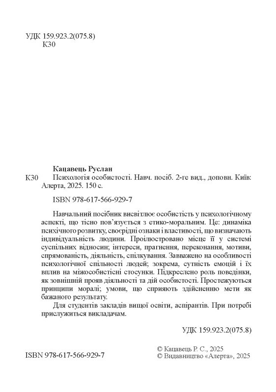 Відгуки про Психологія особистості. Навчальний посібник. Друге видання