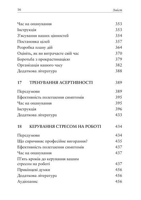 Успіх книги Марти Девіс, Елізабет Р. Ешельман і Метью Маккея «Релаксація і зняття стресу. Робочий зошит» говорить сам за себе: це вже сьоме видання і продано понад мільйон примірників. Цей оновлений робочий зошит допоможе вам дослідити власні тригери стресу, визначити свої симптоми та скласти особистий план дій для зменшення стресу. У кожному розділі описано різні методи релаксації, пояснено, чому і як вони працюють, а також запропоновано вправи, які можна виконувати тоді, коли стрес стає непосильним.