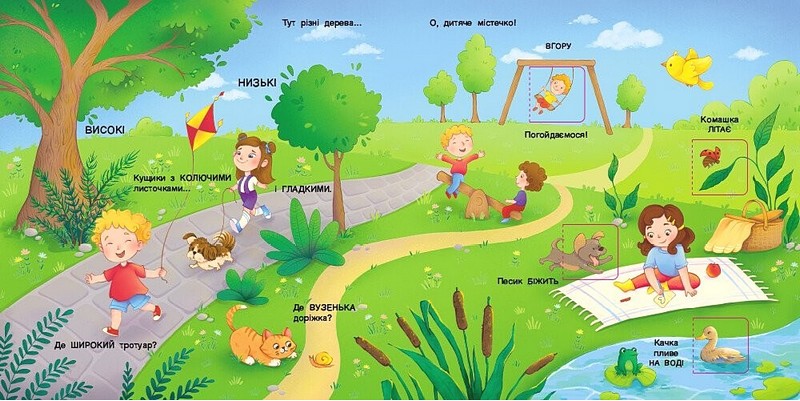 Навколо так багато схожого і відмінного. Достатньо лиш уважно роззирнутися навкруги. Нумо вивчати, чим схоже й відмінне те, що ми бачимо навколо. Ми зазирнемо в різні куточки: - завітаємо до парку, побуваємо за містом, - погуляємо в лісі, - відпочинемо в аквапарку, - пограємо у хованки. Ох і цікаві будуть пригоди!