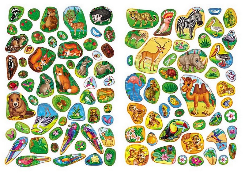 Понад 100 наліпок із зображеннями тварин створюють унікальну можливість дитячій уяві «побувати» в різних куточках планети.