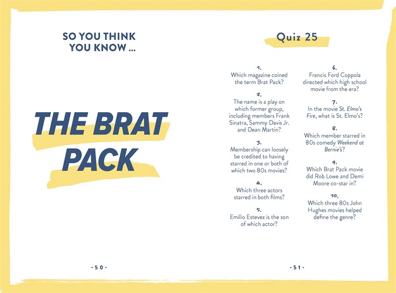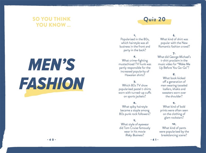 These 450+ questions will put your knowledge of the most bodacious decade to the test! What’s the favourite food of the Teenage Mutant Ninja Turtles? On what date did MTV first air? Which hairstyle was all business in the front and party at the back? What were Hulk Hogan’s signature colours? This interactive trivia book about the decade that gave us The Golden Girls, Wham! and the fall of the Berlin Wall, is the ultimate chance to show all your friends how, when it comes to 80s trivia, nobody can put YOU in a corner.