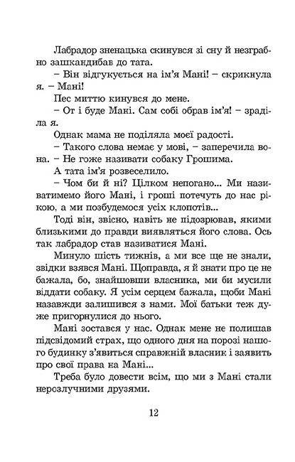 «Пес на ім'я Мані, або Абетка грошей» — це не просто книжка, а справжній фінансовий порадник у формі доброї, захопливої казки. Головна героїня — Кіра, яка знаходить пораненого пса й відкриває разом з ним не лише нову дружбу, а й таємниці правильного поводження з грошима. Мані — особливий пес, адже він говорить і вчить Кіру, як досягати цілей, збирати, планувати та впевнено йти до своєї мрії. А разом із нею вчиться й кожен читач!
