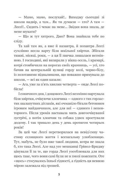 Колі на кличку Лессі, опинившись далеко від дому через фінансові труднощі господарів, долає сотні миль, перешкоди й небезпеки і зрештою повертається до свого щирого друга — хлопчика Джо.
